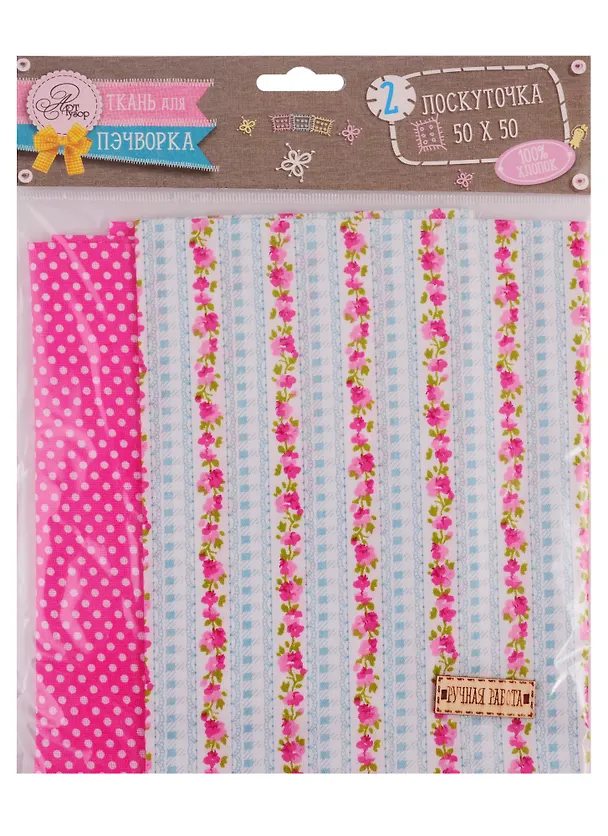 В комплект входит 2 лоскутка, которые превосходно сочетаются между собой по цветовой гамме. Ткань выполнена из натурального хлопка, приятна на ощупь, воздухопроницаема, не вызывает аллергии. Материал обладает высокой прочностью, устойчивостью к выцветанию, многократной стирке и глажке.