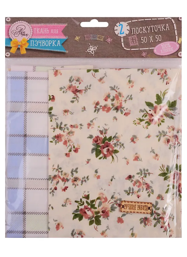 В комплект входит 2 лоскутка, которые превосходно сочетаются между собой по цветовой гамме. Ткань выполнена из натурального хлопка, приятна на ощупь, воздухопроницаема, не вызывает аллергии. Материал обладает высокой прочностью, устойчивостью к выцветанию, многократной стирке и глажке.
