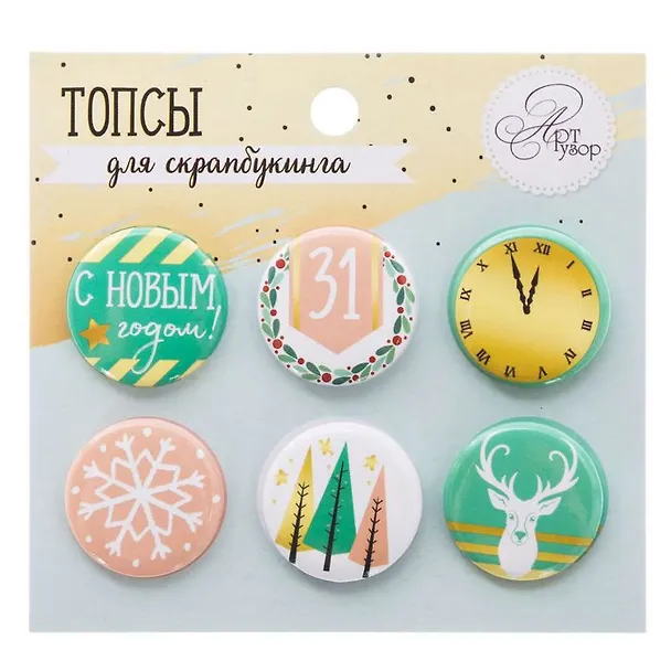 Декор с новогодним дизайном подойдет для оформления любых скрап-объектов: блокнотов, тетрадей, фоторамок, альбомов, подарков. Топсы прекрасно сочетаются с другими элементами.