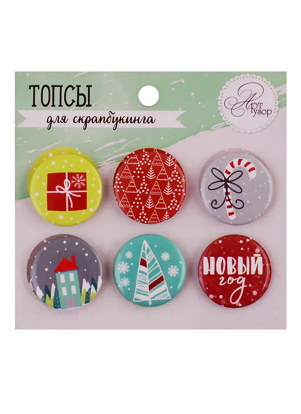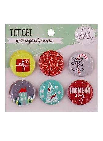 Топсы — это объёмные круглые украшения на клеевой основе. Они невероятно удобны в использовании! Декор с новогодним дизайном подойдет для оформления любых скрап-объектов: блокнотов, тетрадей, фоторамок, альбомов, подарков. Топсы прекрасно сочетаются с другими элементами. В набор входит 6 фишек на клеевой основе.