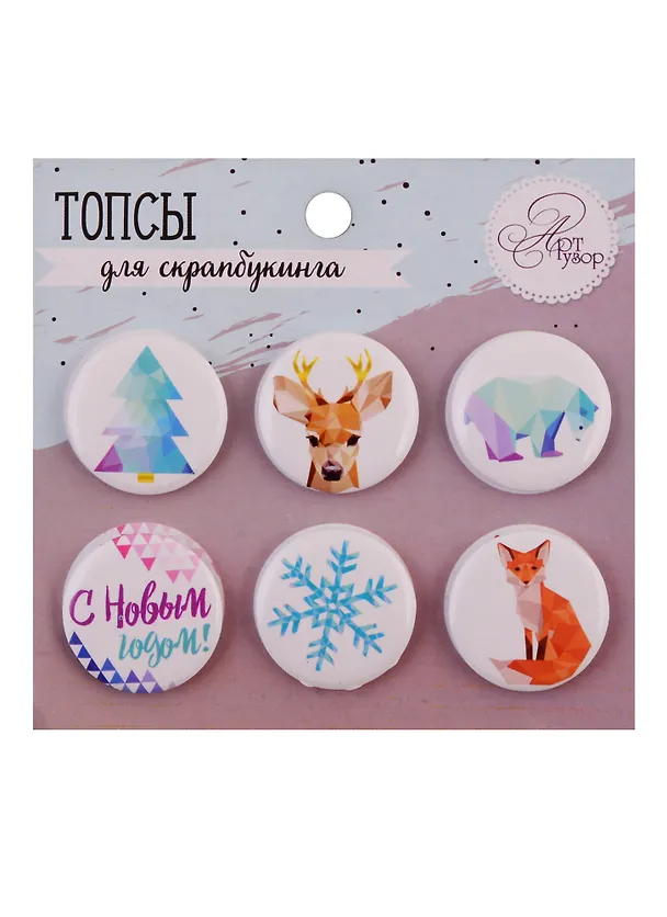 Декор с новогодним дизайном подойдет для оформления любых скрап-объектов: блокнотов, тетрадей, фоторамок, альбомов, подарков. Топсы прекрасно сочетаются с другими элементами.