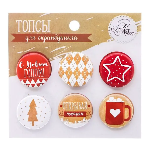 Декор с новогодним дизайном подойдет для оформления любых скрап-объектов: блокнотов, тетрадей, фоторамок, альбомов, подарков. Топсы прекрасно сочетаются с другими элементами.
