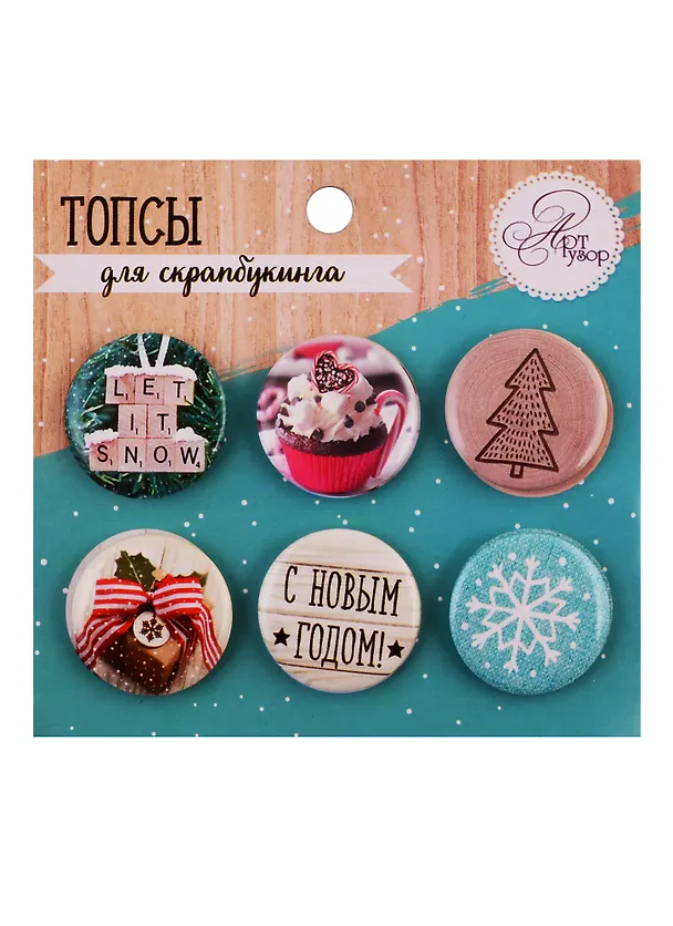 Декор с новогодним дизайном подойдет для оформления любых скрап-объектов: блокнотов, тетрадей, фоторамок, альбомов, подарков. Топсы прекрасно сочетаются с другими элементами.