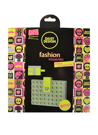 Набор для создния своими руками оригинального, яркого кошелечка. В наборе: фетровые детали, кнопка, нитки, пластиковая игла.