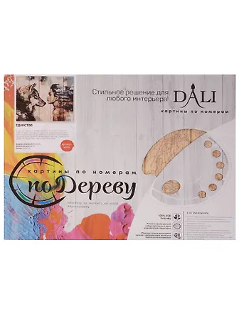 Преимущества максимальной комплектации набора понятны с первого взгляда - здесь есть все, чтобы создать невероятный по красоте шедевр. Однако не только в этом уникальность новинки. В единстве природы и человека всегда остается недосказанность. Прямой открытый взгляд друг на друга как обращение вглубь себя, в свои потаенные чертоги где, может быть, притаилась непокоренная цивилизованными рамками стихия. Найди в себе силу, открой Арт по дереву DALI «Единство» – мы с тобой одной крови! В отличие от живописи по номерам на холсте, цвет номерка на панно соответствует цвету краски в палитре, благодаря чему цифры легче прокрашиваются и не просматриваются на готовом рисунке.