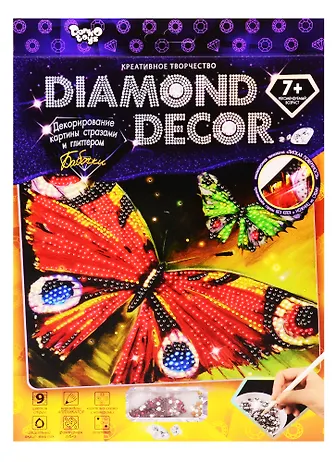 «Diamond Decor» – серия наборов креативного творчества, выполненная в технике декорирования стразами, предназначенная не только для взрослых, но и для детей! Простая в исполнении и очень красивая картина, будет сиять «Бриллиантовым Блеском», пленя и покоряя взгляды самых искушенных зрителей! Каждый установленный камень, передает и излучает неповторимый и только глазу заметный, чарующий блеск, а сияющий глиттер, придает картине дополнительное сверкание! Сделать такой шедевр очень просто и под силу даже ребенку! На картину нанесен липкий слой, который позволит без клея закрепить стразы, а указанные номера, делают работу очень простой и интуитивно понятной! Специальный карандаш-аппликатор для з