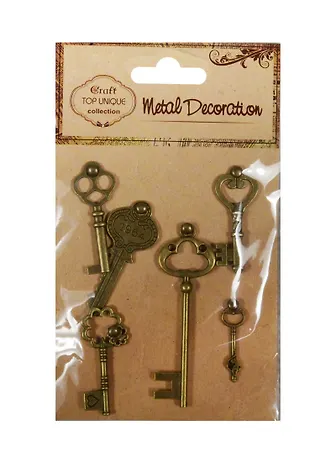 Набор для творчества, Декоративные металлические ключики, античная бронза №1, 6шт, в ассортименте