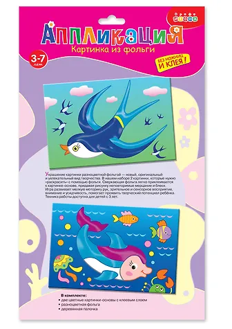 Набор для творчества Дрофа-Медиа Аппликация Картинка из фольги (2 в 1). Ласточка. Дельфин