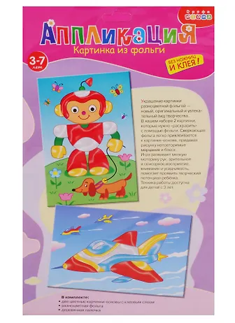 Этот набор увидела в интернет-магазине и не смогла удержаться, заказала ребёнку. Понравилась интересная задумка, новый вид творчества для нас. В наборе две картинки для мальчиков: изображение робота и ракеты. Суть набора заключается в том, что нужно изображение так сказать раскрасить фольгой. По всей картине идёт клеевая основа. Фольги много, остаётся ещё после творчества. По времени занятие на минут 10-15. Так как у меня сыну 2 года, выполнял с моей помощью. Минусов не нашла для нашего возраста. Возможно для детей постарше, было бы классно чтобы было больше деталей для "раскрашивания", так как фольга то остаётся и в приличном количестве.