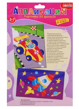 Набор для творчества Дрофа-Медиа Аппликация Картинка из фольги (2 в 1). Спортивная машина. Ракета
