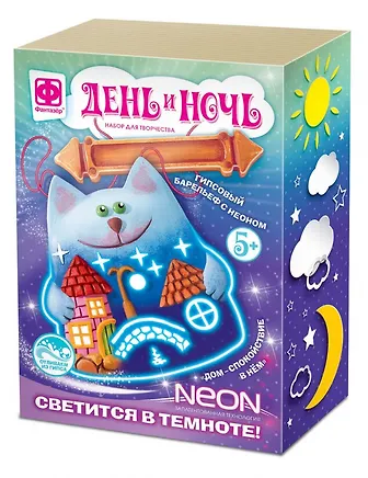 Состав: гипс, пластмасса, неоновый порошок, текстиль, краски, кисть, акриловый лак, бумага.
