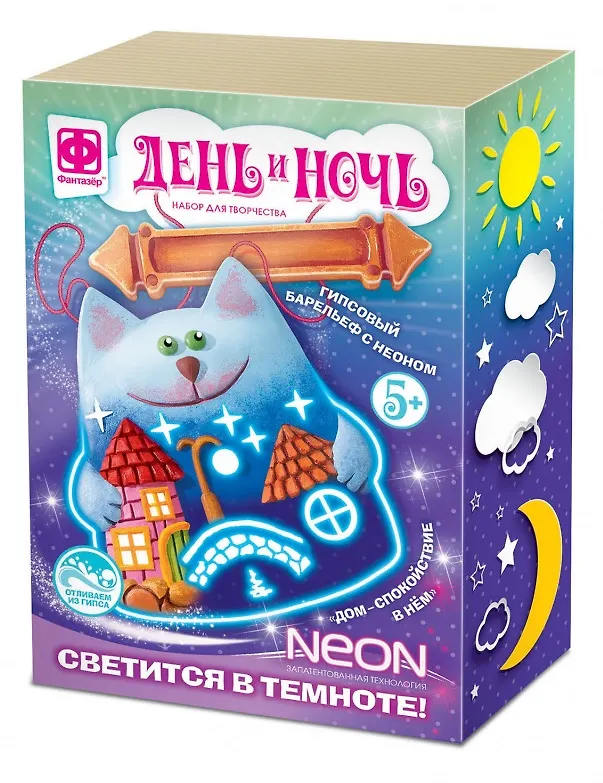 Набор для творчества Фантазер Гипсовый барельеф с неоном Дом - спокойствие в нем