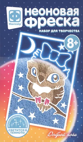 Приобрела данную фреску, как обычно, для племянницы. Делали вместе, так как с этой работой мороки было побольше, нежели с другими. Размер наборчика маленький, сама фреска тоже небольшая: размер готовой фрески примерно 10х15 см. Песка в комплекте много, что не может не радовать. Не пугайтесь, светящегося песка тоже хватит, и даже ещё останется, хотя кажется, будто его мало) Главное - помогите ребёнку верно его распределить. Учтите при покупке, что подложку для прочности фрески нужно будет вырезать самостоятельно из обратной стороны коробки. Светится фреска очень ярко, даже днём, если сначала дать песку немного "зарядиться", а потом прикрыть рисунок рукой - свечение видно отлично. В полностью тёмном помещении можно использовать как ночник) в общем и целом товар однозначно рекомендую, интересно делать даже взрослому человеку)
