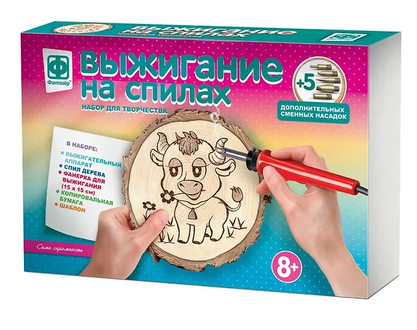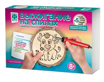 Данный набор для выжигания на спилах приобретала для своей дочери, мне и ребёнку комплект для творчества очень понравился) При выжигании проблем у ребёнка не возникло, дочь справилась совсем сама. Очень порадовало, что в комплектацию набора входит несколько насадок. Картинка получилась весьма забавной и красивой. К покупке однозначно рекомендую!