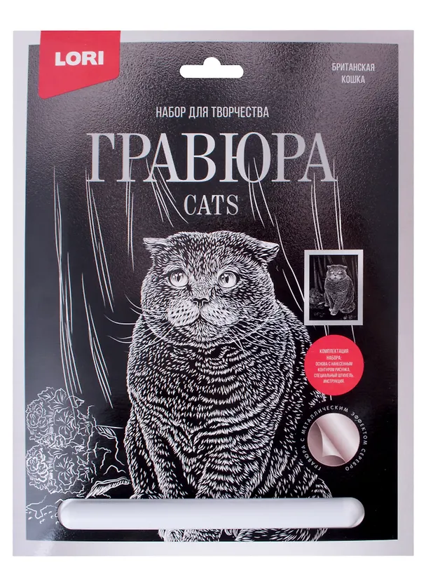 Гравюра нанесена на плотный картон с блестящей подложкой (золото или серебро). На чёрном фоне нанесён контур, по которому специальным скребком, который идёт в комплекте, нужно процарапать рисунок.