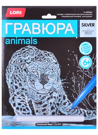Набор для творчества. Гравюра большая с эффектом серебро "Снежный барс". Набор содержит острый предмет! Для детей от 6 лет под присмотром взрослых.