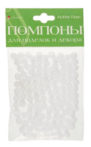 Набор для творчества HOBBY TIME, Помпоны пушистые Белые, 8мм, 120шт