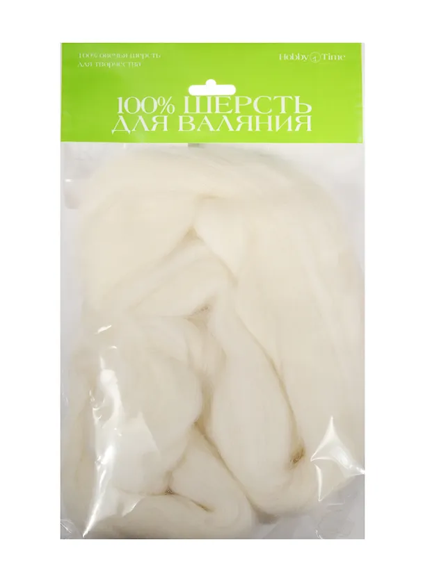 Набор для творчества HOBBY TIME, Шерсть для валяния полутонкая (гребенная лента) БЕЛАЯ 50гр