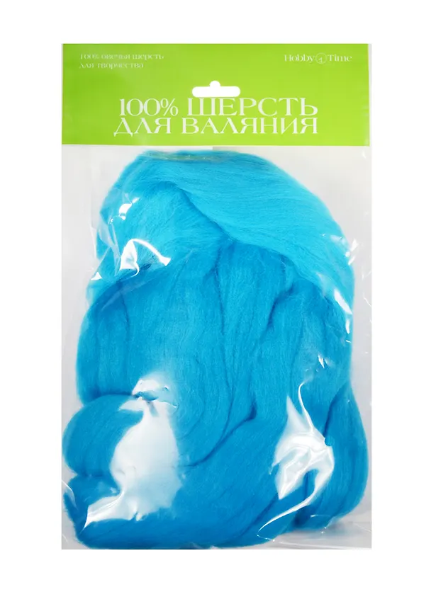 Набор для творчества HOBBY TIME, Шерсть для валяния полутонкая (гребенная лента) БИРЮЗОВАЯ 50гр
