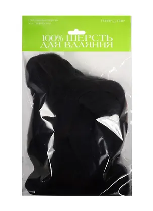 Набор для творчества HOBBY TIME, Шерсть для валяния полутонкая (гребенная лента) ЧЕРНАЯ 50гр
