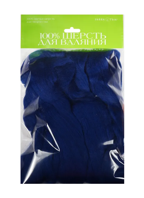 Набор для творчества HOBBY TIME, Шерсть для валяния полутонкая (гребенная лента) СИНЯЯ 50гр