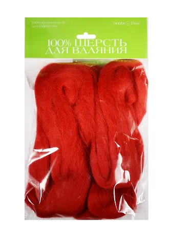 Набор для творчества HOBBY TIME, Шерсть для валяния полутонкая (гребенная лента) ВИШНЕВАЯ 50гр