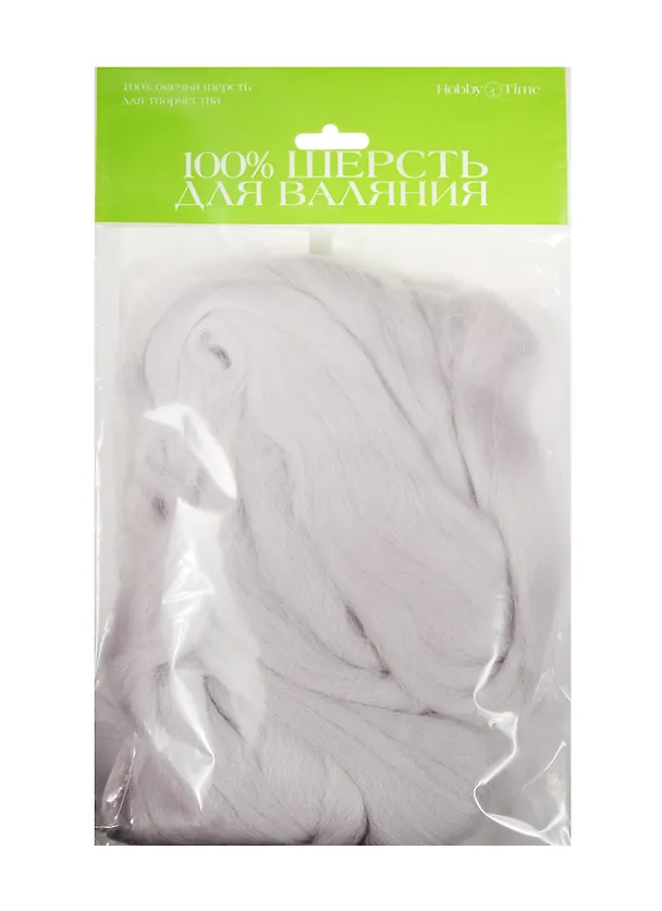 Набор для творчества HOBBY TIME, Шерсть для валяния полутонкая (гребенная лента) ЖЕМЧУЖНАЯ 50гр