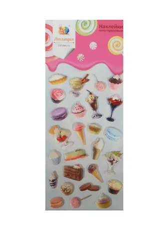 Наклейки Липляндия Десерт - прекрасный подарок и увлекательное занятие для раннего развития детей и творчества взрослых. Яркие наклейки погружают в игру, развивают воображение и моторику ребенка. Многоразовые наклейки Липляндия выполнены из качественных материалов и разработаны с учетом возрастных особенностей детей.