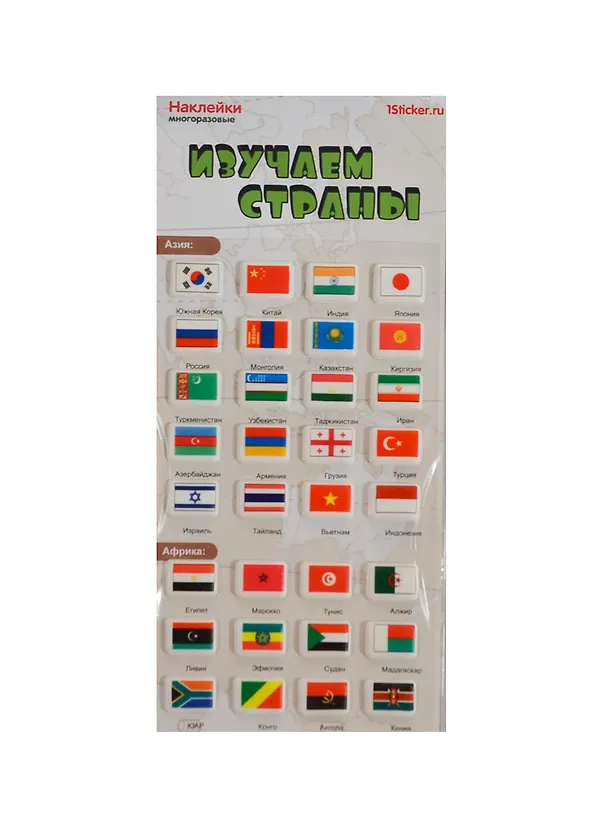 Набор для творчества, ЛИПЛЯНДИЯ, Наклейки многоразовые, Флаги Азии и Африки 6299