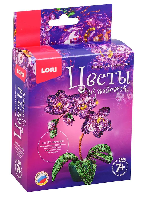 Набор для творчества LORI Цветы из пайеток Орхидея Цв-022
