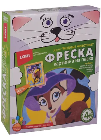 Набор для творчества LORI Фреска, Картина из песка "Модная кошечка"