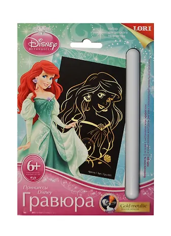 Набор для творчества LORI Гравюра Принцессы Disney/Дисней малая с эффектом золота Ариэль" Грд-005"