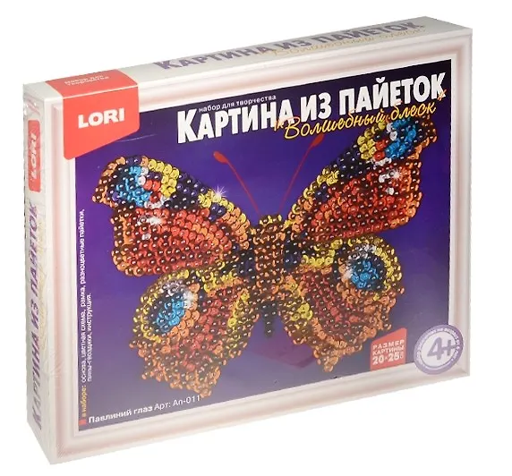 Набор предназначен для того, чтобы ребенок увлекательно провёл время за интересным занятием изготовления картинки из пайеток. Занятия с данным набором развивают внимание, способствуют развитию мелкой моторики рук, воспитывают усидчивость. Пайетки круглые 6мм,пенопласт 20*25,плинтус, печатная основа,пин-гвоздики 12мм,инструкция
