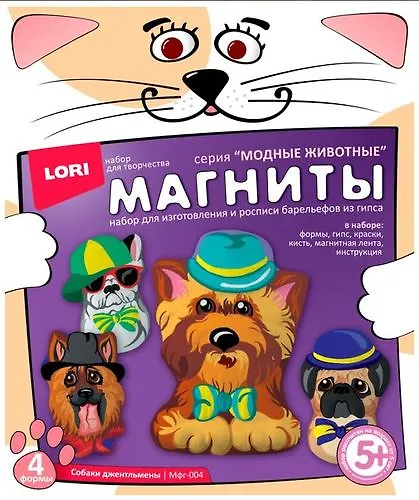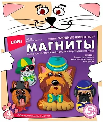 Набор для изготовления и росписи барельефов из гипса Формы, гипс, акварельные краски, кисть, магнитная лента, инструкция.