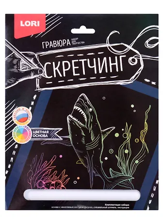 Набор для творчества LORI Скретчинг Гравюра цветная Животные "Хищная акула"