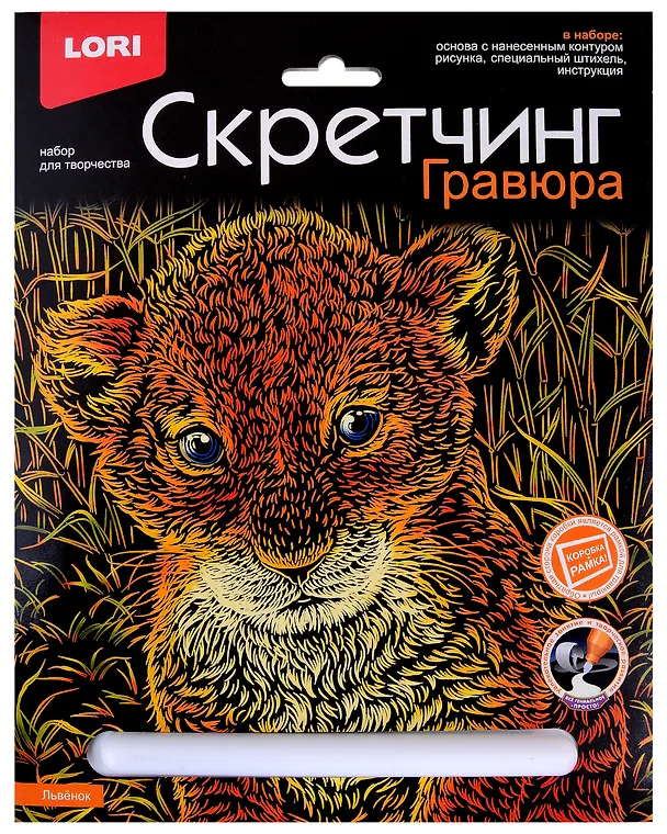 Комплектация: Основа с нанесенным контуром, специальный штихель, инструкция.