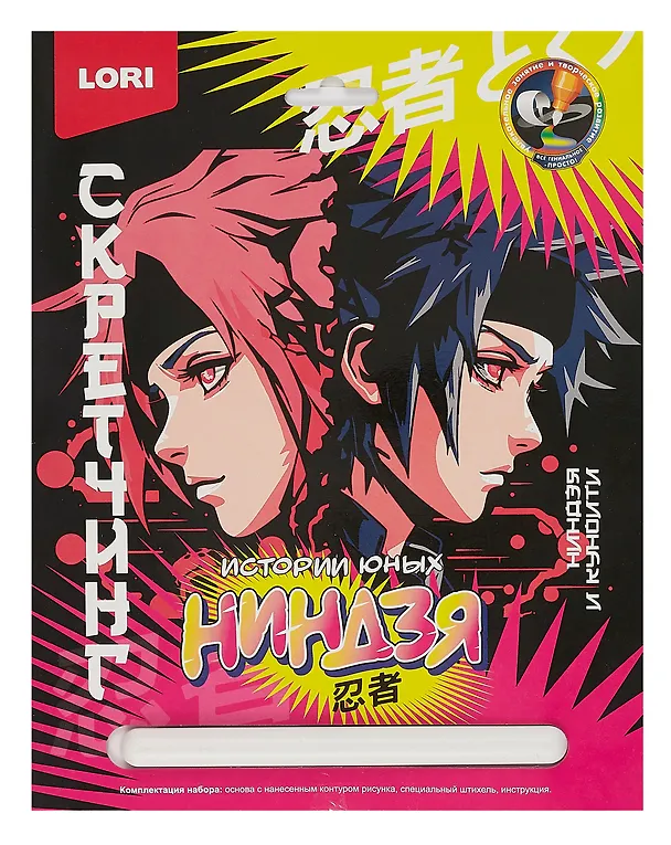 Скретчинг — это особый вид рисования методом сцарапывания верхнего слоя краски специальным инструментом — штихелем. В процессе работы, штрих за штрихом, проглядывается яркая цветная картинка с крутыми героями ниндзя, которые на черном фоне смотрятся необычно и стильно.