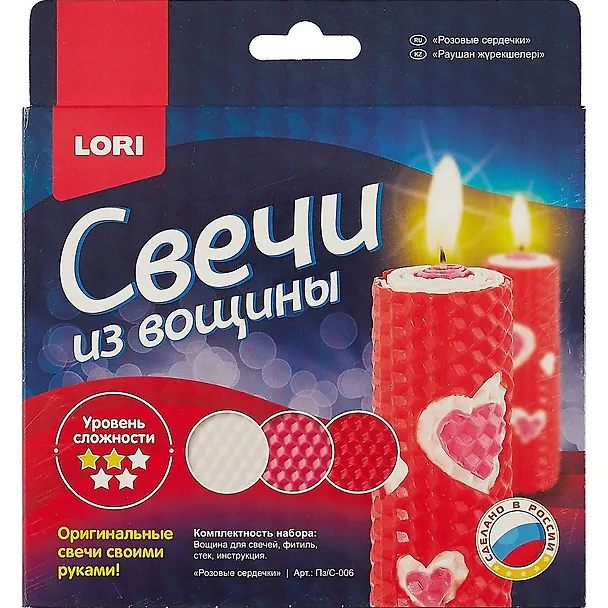 Набор для творчества LORI Свечи из вощины Розовые сердечки