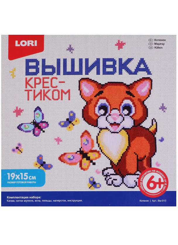 Набор для творчества LORI Вышивка крестиком мулине "Котенок", пяльцы Вм-013