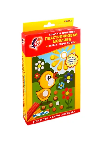 Набор "Пластилиновая мозаика" ("Цыплёнок"). В набор входит: пластилин 6 цветов, цветные рисунки - 4 шт и стек – 1 шт. Набор разработан с учетом особенностей общего развития малыша. NEW!