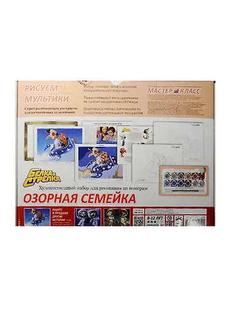 Художественный набор выполнен по мотивам популярного российского анимационного сериала «Белка и Стрелка».