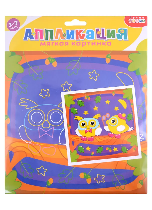 Аппликация - один из основных видов творчества для самых маленьких детей. Аппликация оказывает огромное влияние на развитие умственных и творческих способностей, мелкой моторики, внимательности и усидчивости. Для создания забавной мягкой картинки вам не понадобятся дополнительные материалы, клей или ножницы. Всё необходимое вы найдёте в нашем наборе. Чтобы наклеить деталь, нужно аккуратно снять её с защитной плёнки и приложить в нужное место на картинке. Яркие, простые иллюстрации прекрасно подходят для первого знакомства малыша с аппликацией.