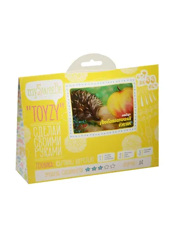 Набор для изготовления картин из шерсти Любопытный ежик «Сделай своими руками «TOYZY» включает в себя: — детальную инструкцию и порядок работы; — все необходимые материалы и инструменты (в т.ч. шерсть, пинцет, подложку, дополнительные элементы). Шерсть, содержащаяся в наборе, являются 100% натуральной и качественной.