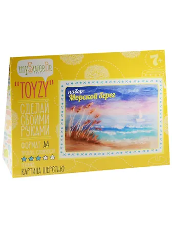 Набор для изготовления картин из шерсти Морской берег «Сделай своими руками «TOYZY» включает в себя: — детальную инструкцию и порядок работы; — все необходимые материалы и инструменты (в т.ч. шерсть, пинцет, подложку, дополнительные элементы). Шерсть, содержащаяся в наборе, являются 100% натуральной и качественной.