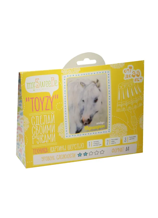 Набор для изготовления картин из шерсти Першерон «Сделай своими руками «TOYZY» включает в себя: — детальную инструкцию и порядок работы; — все необходимые материалы и инструменты (в т.ч. шерсть, пинцет, подложку, дополнительные элементы). Шерсть, содержащаяся в наборе, являются 100% натуральной и качественной.