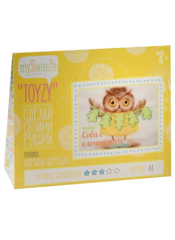 Набор для творчества MySweeBe TOYZY "Картина из шерсти Сова с елочками"
