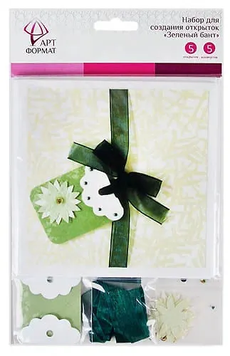 Набор для творчества Набор д/скрапбукинга для создания открыток Зеленый бант AF07-042-06