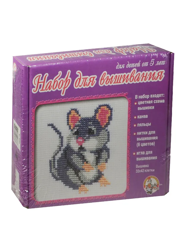 Набор для вышивания крестиком "Мышонок". Занятие рукоделием развивает моторику рук, усидчивость и аккуратность. Размер вышивки - 33х42 клетки.