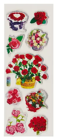 Симпатичные наклеечки для творчества. Мне пришли не с цветочками, как показано на фотографиях, а с машинками - подарила наклейки брату, он остался очень доволен. Наклейки яркие, с серебристыми блёстками. Смотрятся красиво, переливаются на свету. Цена довольно низкая, при этом качество товара отличное. Приклеиваются без труда, держатся замечательно. Ими можно украсить что угодно - от ежедневника до холодильника. Рекомендую!
