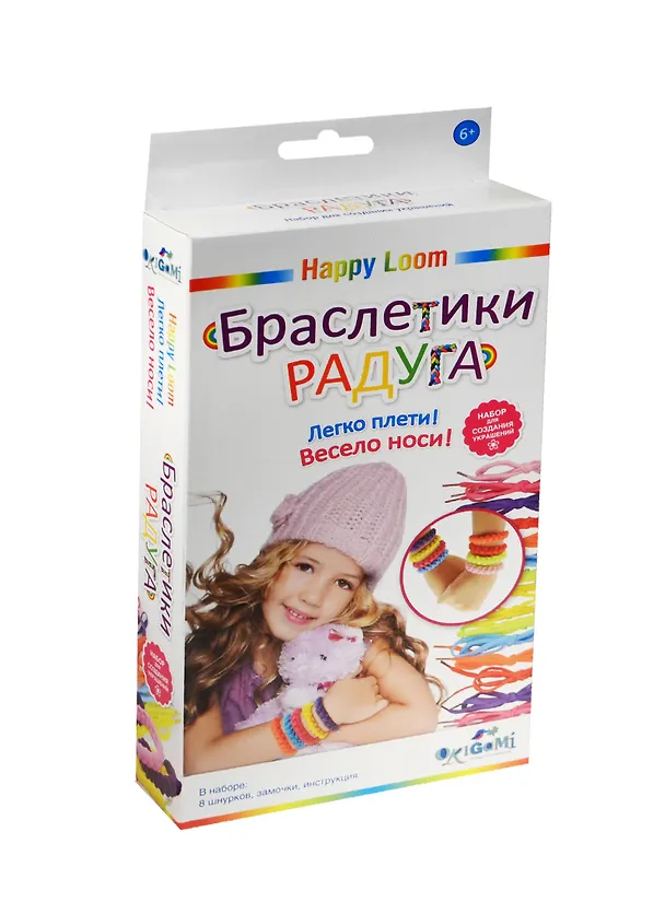 Описание: Набор для создания украшений из серии марки Happy Loom. "Браслетики-радуга" - это веселое развлечение для детей. В наборе: 8 шнурочков (желтый, светло-желтый, голубой, оранжевый, красный, фиолетовый, розовый, светло-розовый), замочки, подробная инструкция по плетению. Наборы торговой марки Happy Loom - это уникальная возможность проявить свою фантазию и творческие способности! Легко плети! Весело носи!